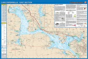 Lake Dardanelle, Arkansas Waterproof Map (Fishing Hot Spots)More catfish per acre than any other body of water in the state. Local guides say, "crappie fishing at its worst is still excellent." One of the top bass lakes too. This map is clean, easy-to-read, and detailed map of the lake. It has a latitude/longitude grid and GPS coordinates. Fishing tips and techniques are included. Size - 24 x 36